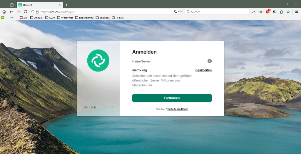 Um überhaupt mal in die Open Source-Geschichte reinzuschnuppern, muss am PC/Notebook selbst nichts gesondert installiert werden. Man kann zwar, aber man muss nicht. Es reicht die folgende Eingabe in der Adresszeile des Browsers: https://riot.im/app/#/register